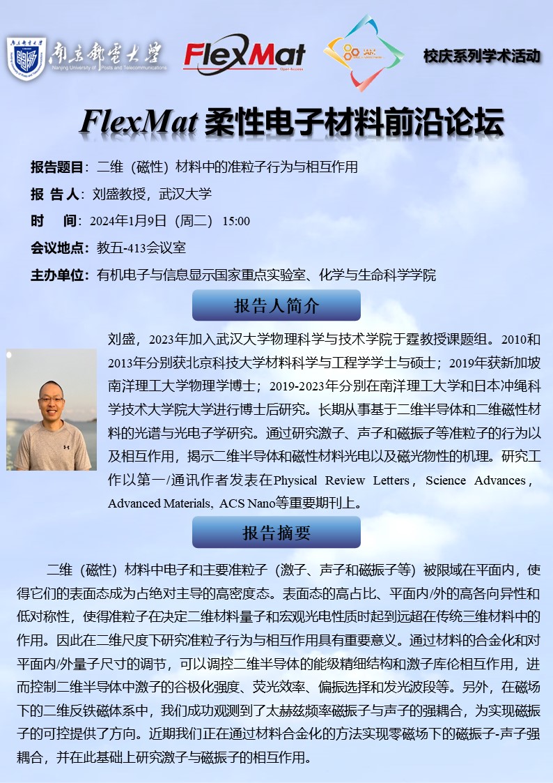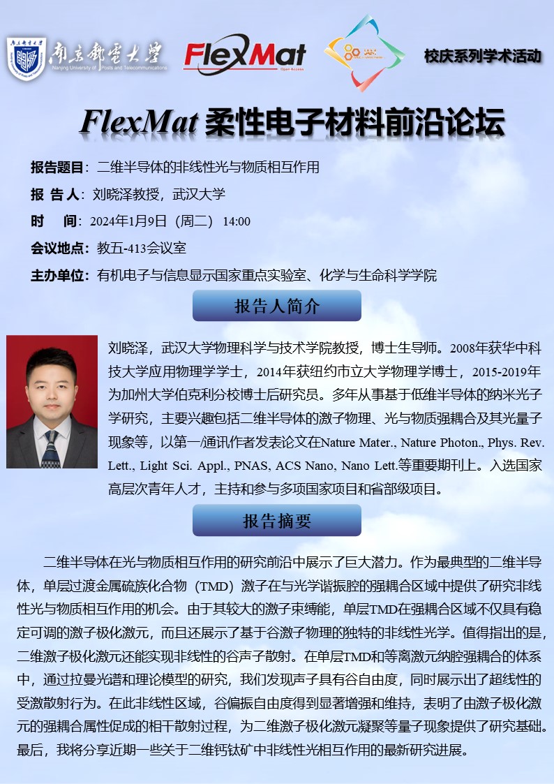FlexMat柔性电子材料前沿论坛: 武汉大学 刘晓泽教授和刘盛教授