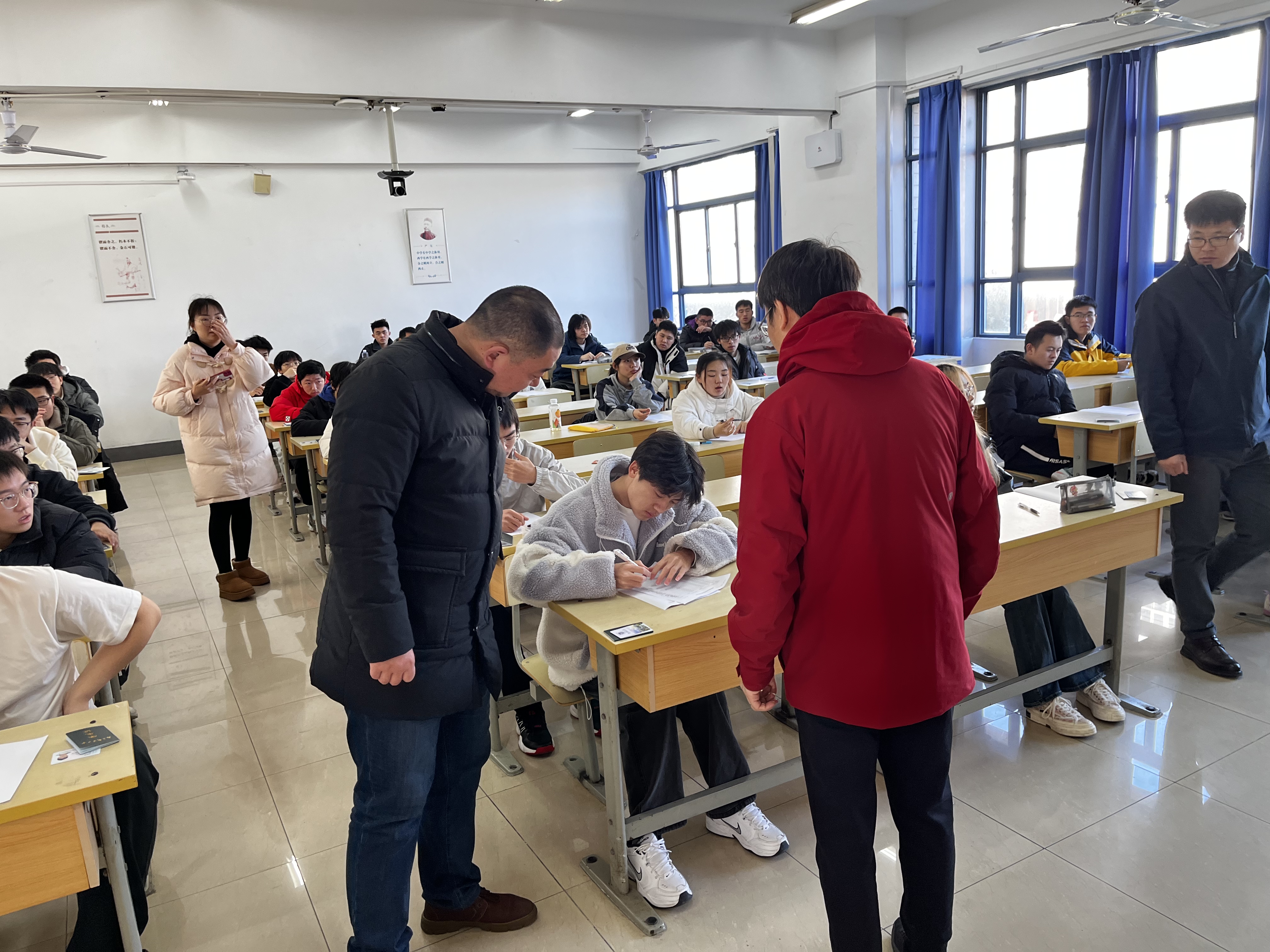 为进一步强化期末考试组织管理和严肃考风考纪,确保期末考试的顺利进行,1月15日,太阳城娱乐 开展2023-2024学年第一学期的期末考试巡考工作。学院党委高志华书记、范曲立院长、陈淑芬副院长、凌海峰副院长和院督导组组长张新稳教授深入各个考场,对考试组织、考场布置、考试秩序及监考教师履职等情况进行了巡查。