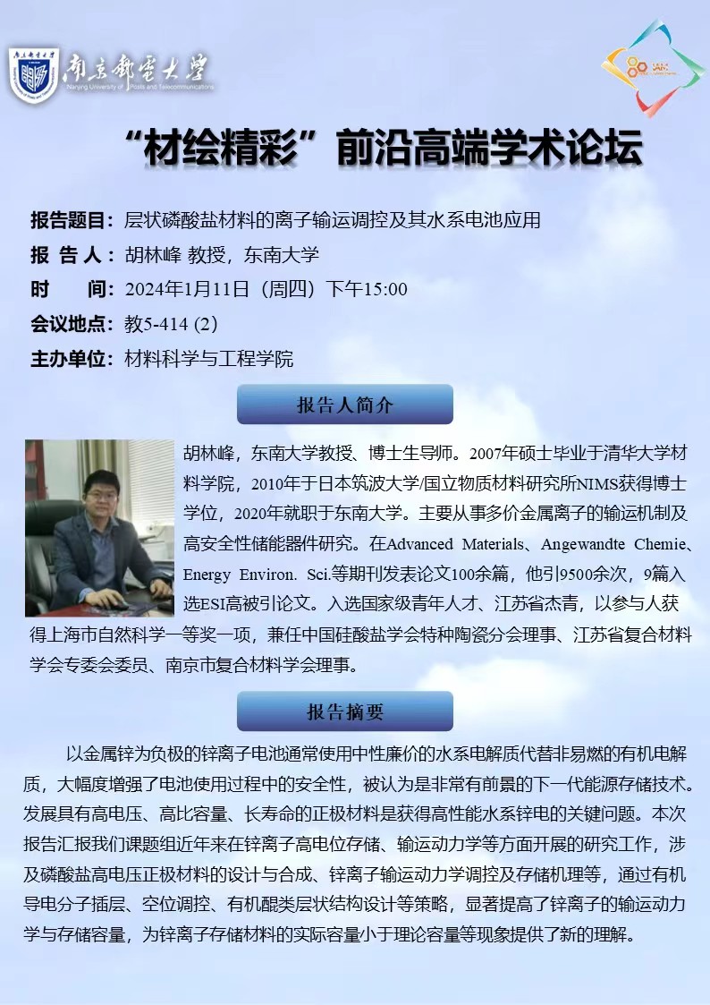 学术报告:东南大学 胡林峰教授