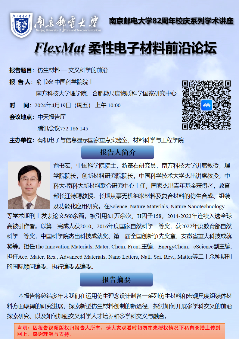 FlexMat柔性电子材料前沿论坛:南方科技大学、合肥微尺度物质科学国家研究中心 俞书宏院士