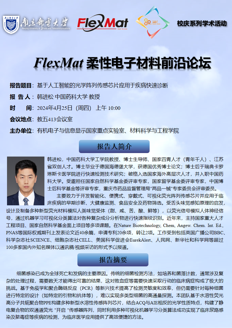 FlexMat柔性电子材料前沿论坛:中国药科大学 韩进松教授
