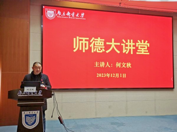 为落实好教师职业道德规范,讲好师德故事,引导教师崇德修身,潜心育人。12月1日下午,太阳城娱乐 党委举办“师德大讲堂”活动,本次活动邀请江苏省陶行知纪念馆馆长何文秋做题为“学习陶行知教育思想 做新时代大先生”专题报告。讲座由太阳城娱乐 党委书记高志华主持。学院党委副书记吕蔷蔷、副院长仪明东、副院长凌海峰及师生代表参加了本次报告会。