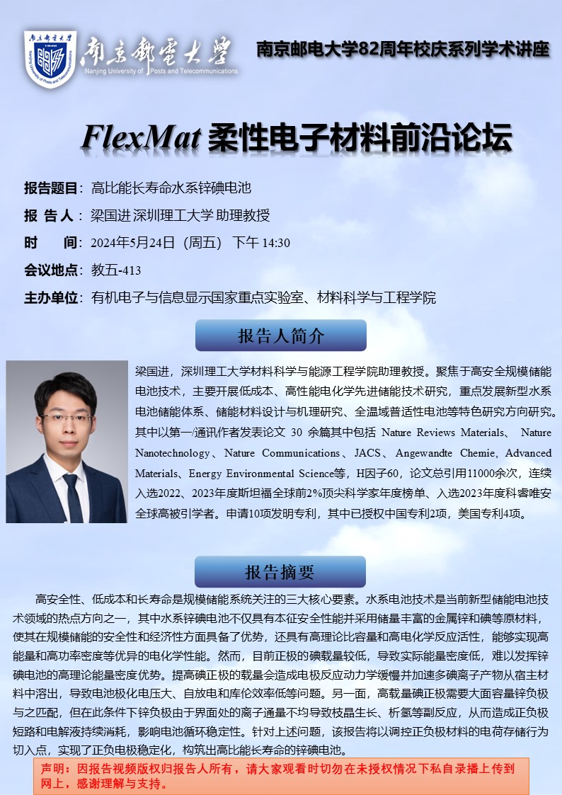 FlexMat柔性电子材料前沿论坛: 深圳理工大学 梁国进教授