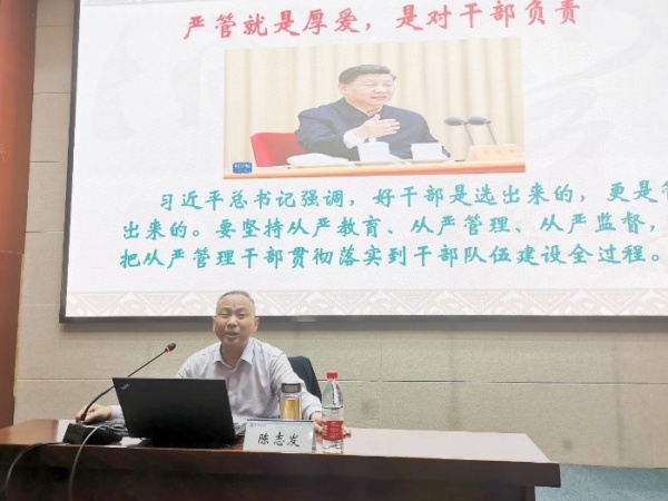 陈志发教授以党的十八大以来历次学习教育为切入点,针对部分党员对党规党纪不上心、不了解、不掌握的现状,从开展党纪学习教育、认真学习《条例》、贯彻落实《条例》三个方面对政治纪律、组织纪律、廉洁纪律、群众纪律、工作纪律、生活纪律进行了逐章逐条的解读,并就认真抓好《条例》贯彻执行提出了意见建议。