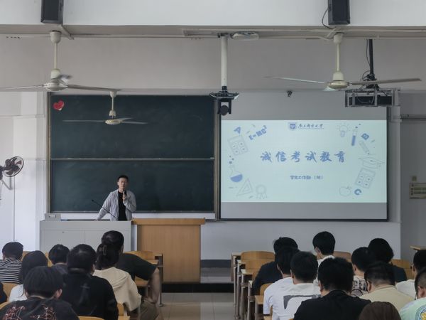2024年6月4日,太阳城娱乐 2021级本科生在教4-311召开2021级“诚信考试、安全警示、本科教育教学审核评估应知应会学习”教育大会,2021级全体学生参加本次大会,会议由2021级辅导员王森主持。