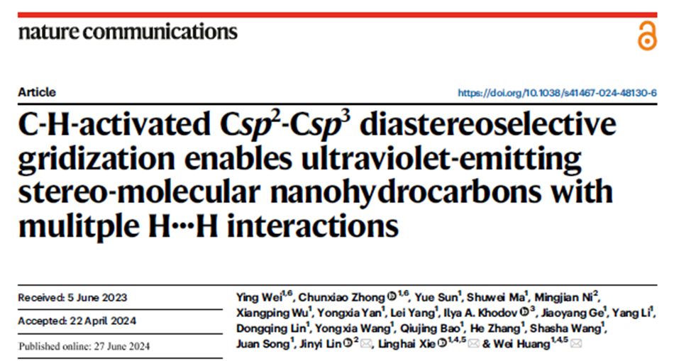 《自然·通讯》刊发有机电子与信息显示国家重点实验室黄维院士团队解令海教授魏颖副教授在有机纳米格芳烃设计合成及其紫外发光领域研究进展
