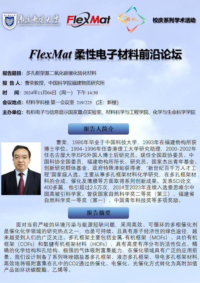 FlexMat柔性电子材料前沿论坛:中国科学院福建物质研究所 曹荣教授