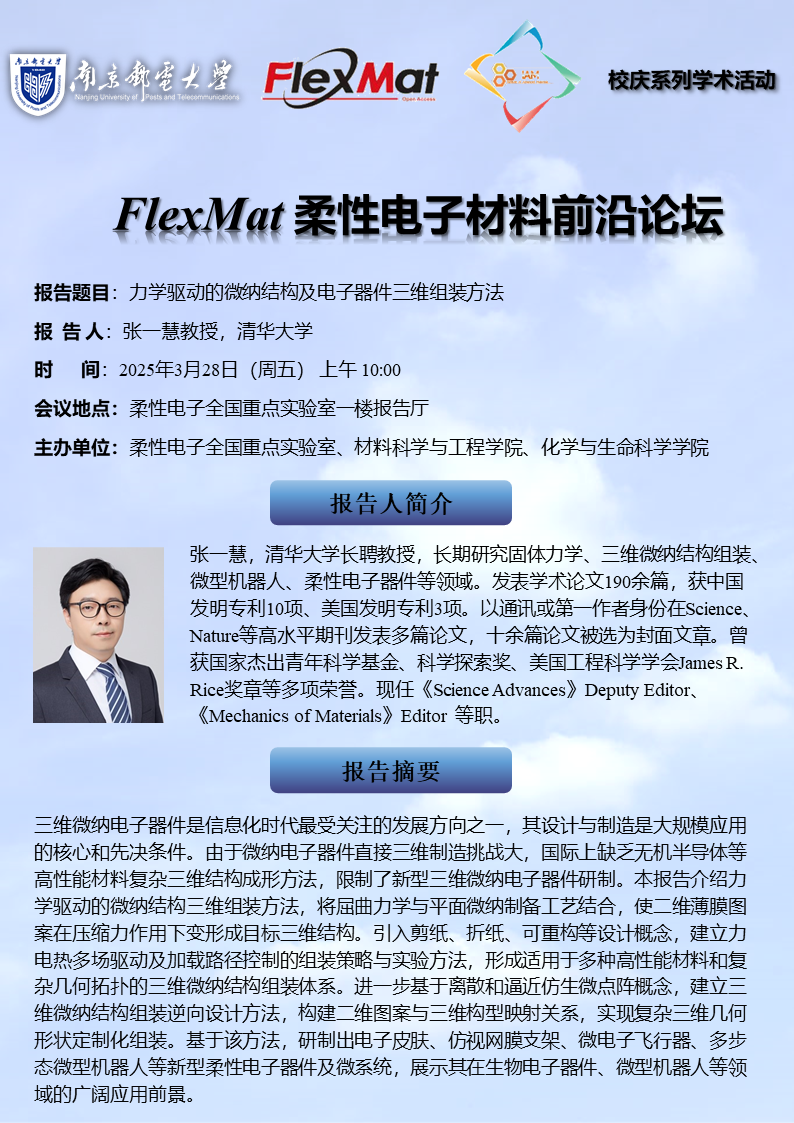 FlexMat柔性电子材料前沿论坛: 清华大学 张一慧 教授