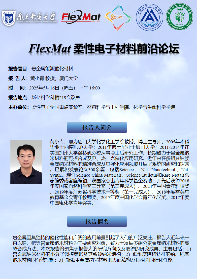 FlexMat柔性电子材料前沿论坛:厦门大学 黄小青 教授
