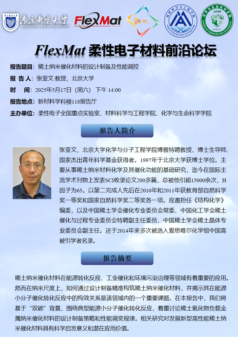 FlexMat柔性电子材料前沿论坛:北京大学 张亚文 教授