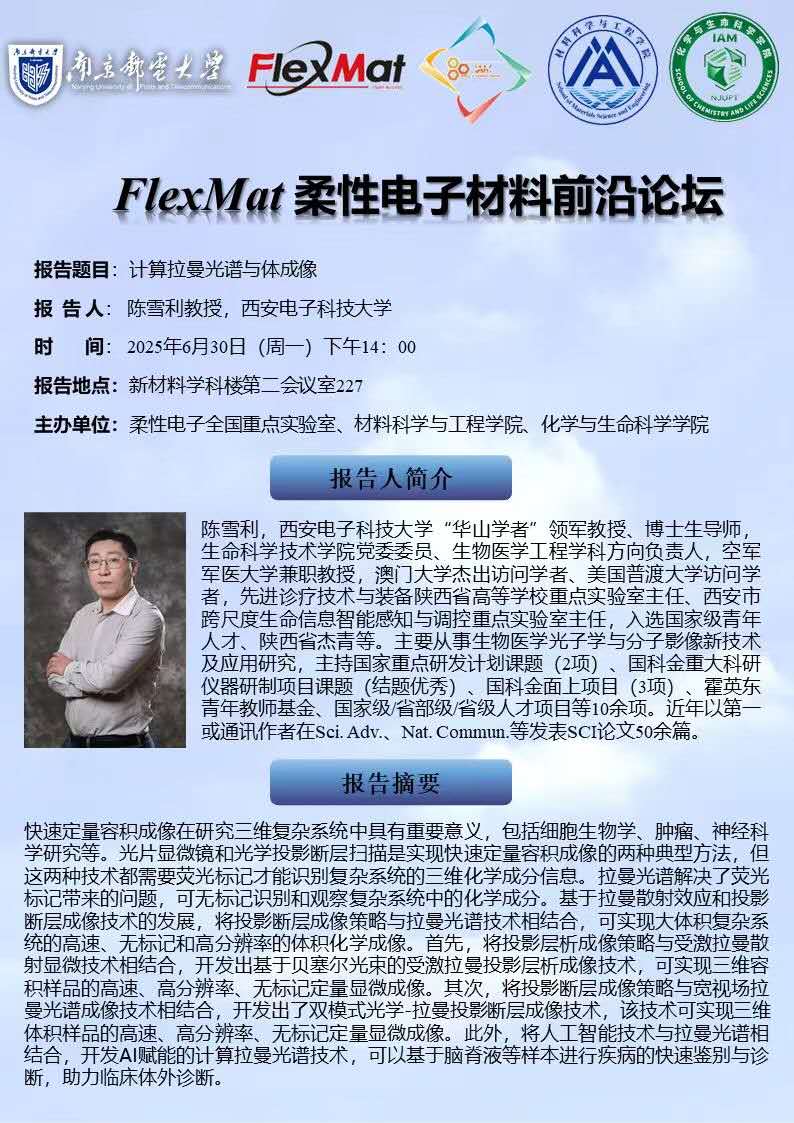 FlexMat柔性电子材料前沿论坛: 西安电子科技大学 陈雪利 教授