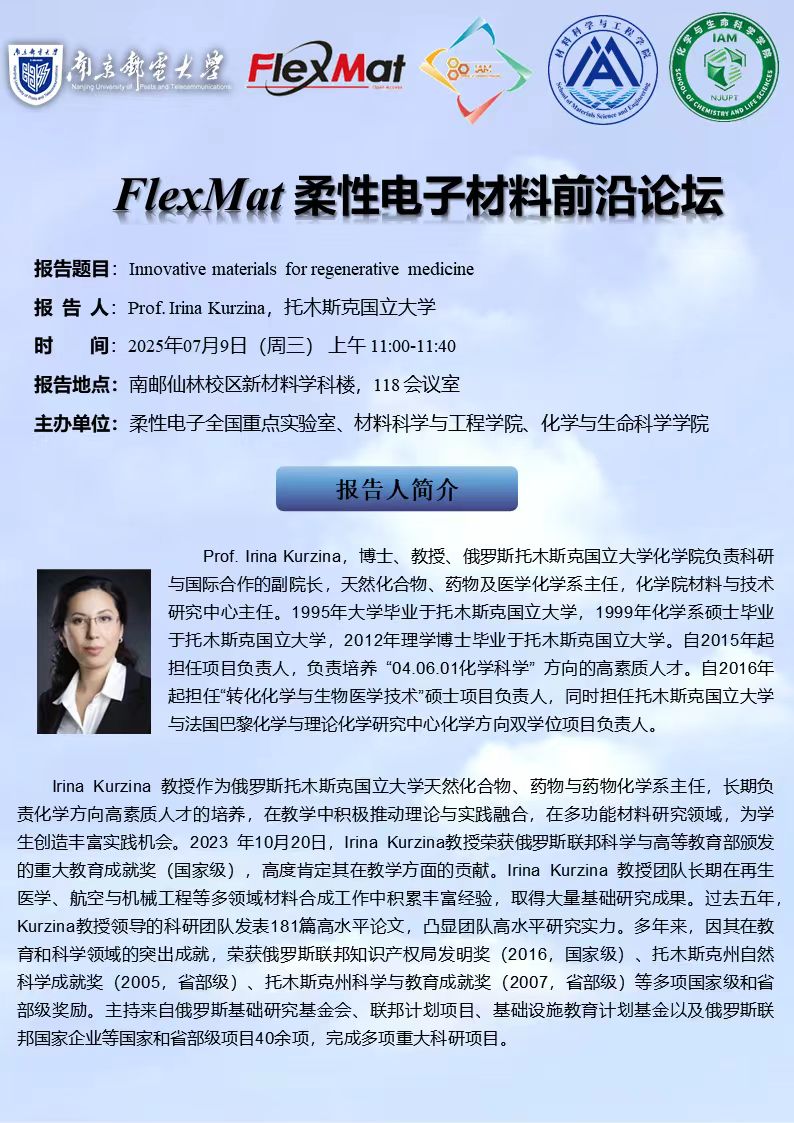FlexMat柔性电子材料前沿论坛: 俄罗斯科学院通讯院士、俄罗斯托木斯克国家医学中心肿瘤研究所 Prof. Nadezhda Cherdyntseva