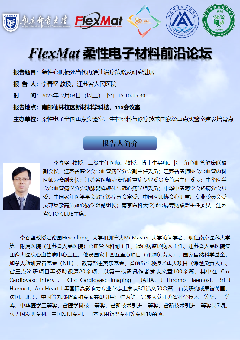 FlexMat柔性电子材料前沿论坛: 江苏省人民医院 李春坚 教授