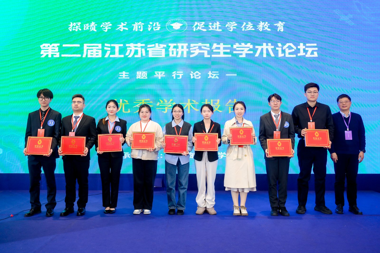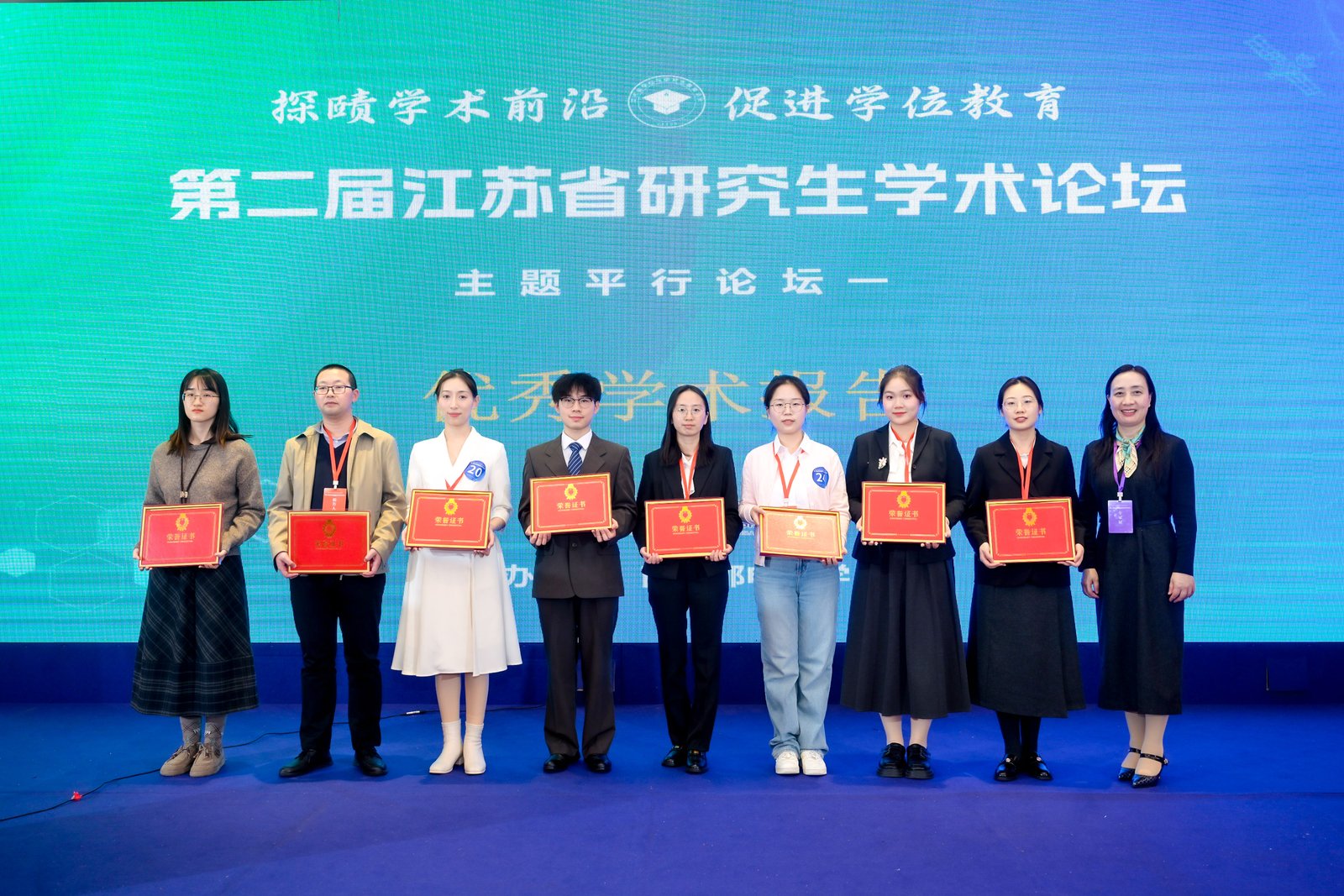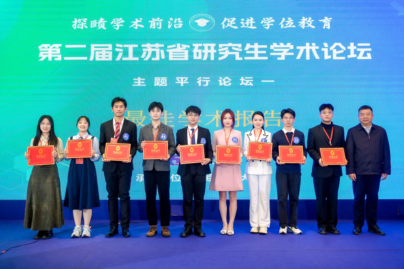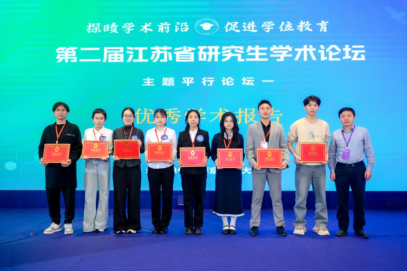 论坛评选出“最佳学术报告”“优秀学术报告”及“最佳风采报告人”等奖项,专家评委为获奖选手颁奖并合影留念。我校李子君、刘睿杰、史之然三名选手获最佳学术报告,董乐获优秀学术报告。本场论坛搭建了一个高质量的青年学者交流平台,促进了不同高校、不同学科之间的互动,也为研究生展示科研成果、锻炼表达能力和拓展学术视野提供了重要机会。