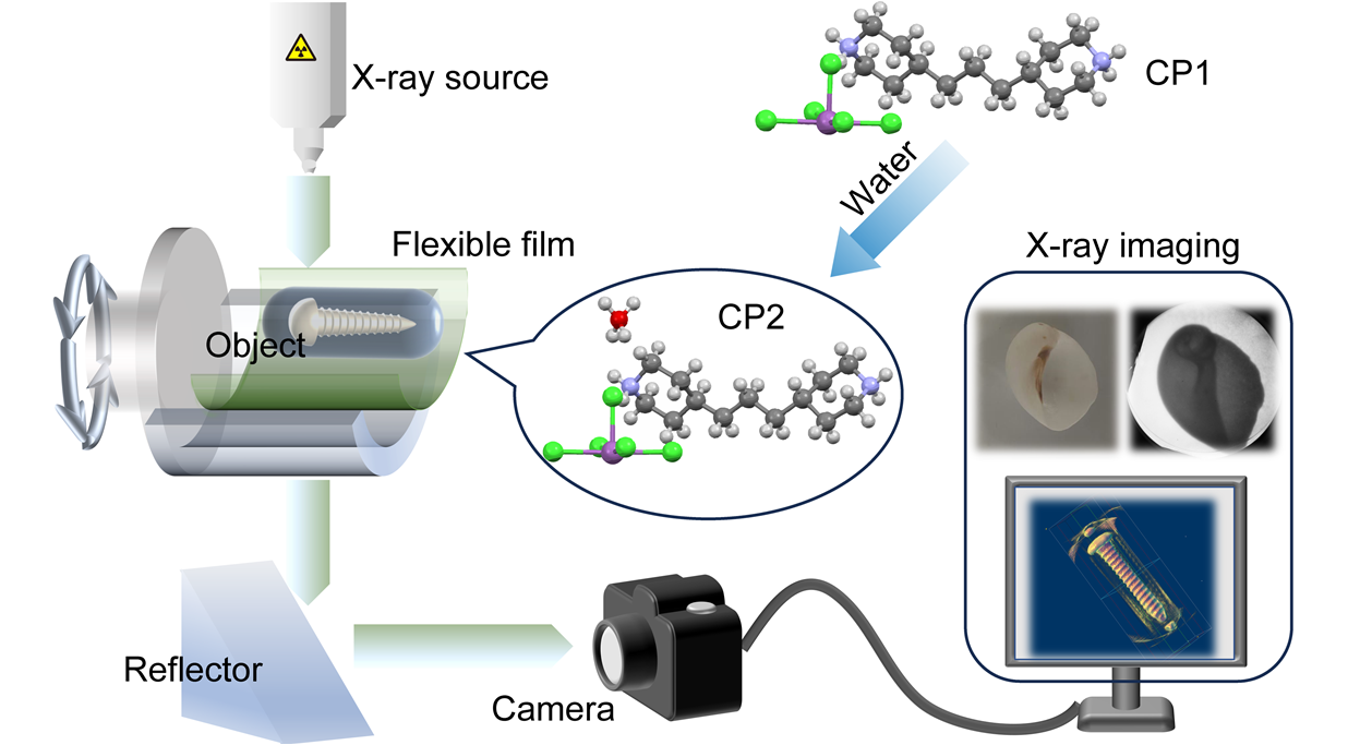 近期,南京邮电大学赵强教授和刘淑娟教授领导的研究团队设计和制备了两种高性能有机-无机杂化锑(Ⅲ)卤化物闪烁体,分别为(BPP)₂SbCl₅(CP1)和(BPP)₂SbCl₅·0.5H₂O(CP2),并进一步将CP2与聚合物复合,制成了可用于X射线动态成像与三维成像的柔性闪烁屏。相关研究成果以“Highly Luminescent Organic-Inorganic Hybrid Antimony Halide Scintillators for Real-time Dynamic and 3D X-ray Imaging”为题发表于Light: Science & Applications。柔性电子全国重点实验室刘淑娟教授和赵强教授为论文通讯作者,博士生崔海霞为第一作者。